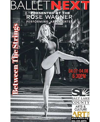 BalletNEXT presents “Between The Strings” at the Rose Wagner Leona Black Box April 7 at 6:30pm and April 8 at 6:30pm. Join BalletNEXT for 2 nights of 3 dynamic works from choreographers Michele Wiles and Brian Reeder. The collection of contemporary choreography is inspired by music created for a string quartet and solo Harp. Michele Wiles , artistic director of BalletNEXT will have two world premieres on the program set to minimalist pieces of composers Max Richter and Ludivico Einaudi. The two shows will also include a Salt Lake City debut of “Between The Two” by Brian Reeder set to music by Caroline Shaw. Brian’s work originally debuted to acclaim review at Eccles Park City in 2024. Please join us for a question and answer session after the shows with the entire BalletNEXT cast.